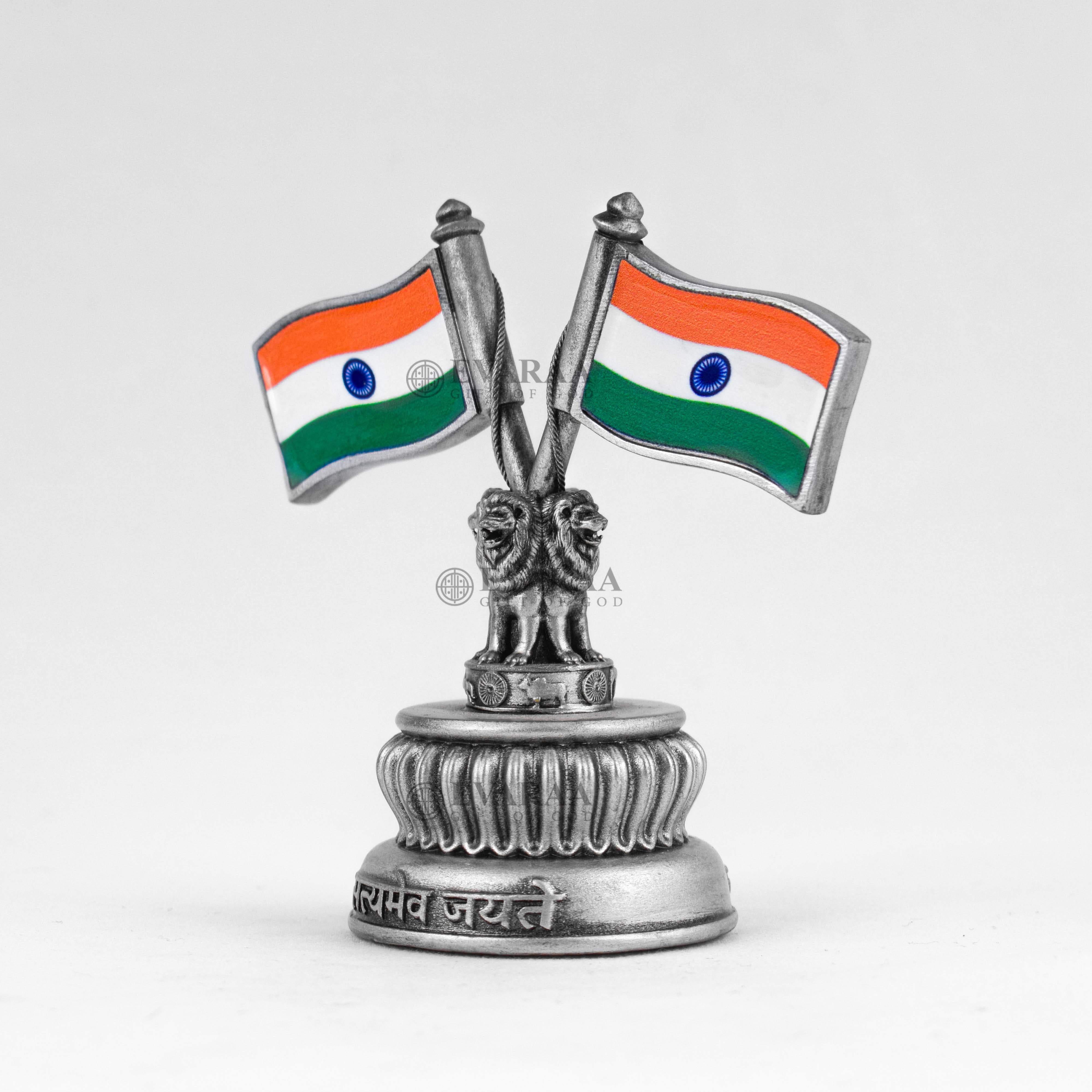 Celebrate the pride, power, and principles of India with this exquisitely crafted Ashok Stambh Desk Showpiece featuring dual Indian National Flags. Designed as a symbol of unity, strength, and truth, this elegant piece brings patriotic elegance to any space.
