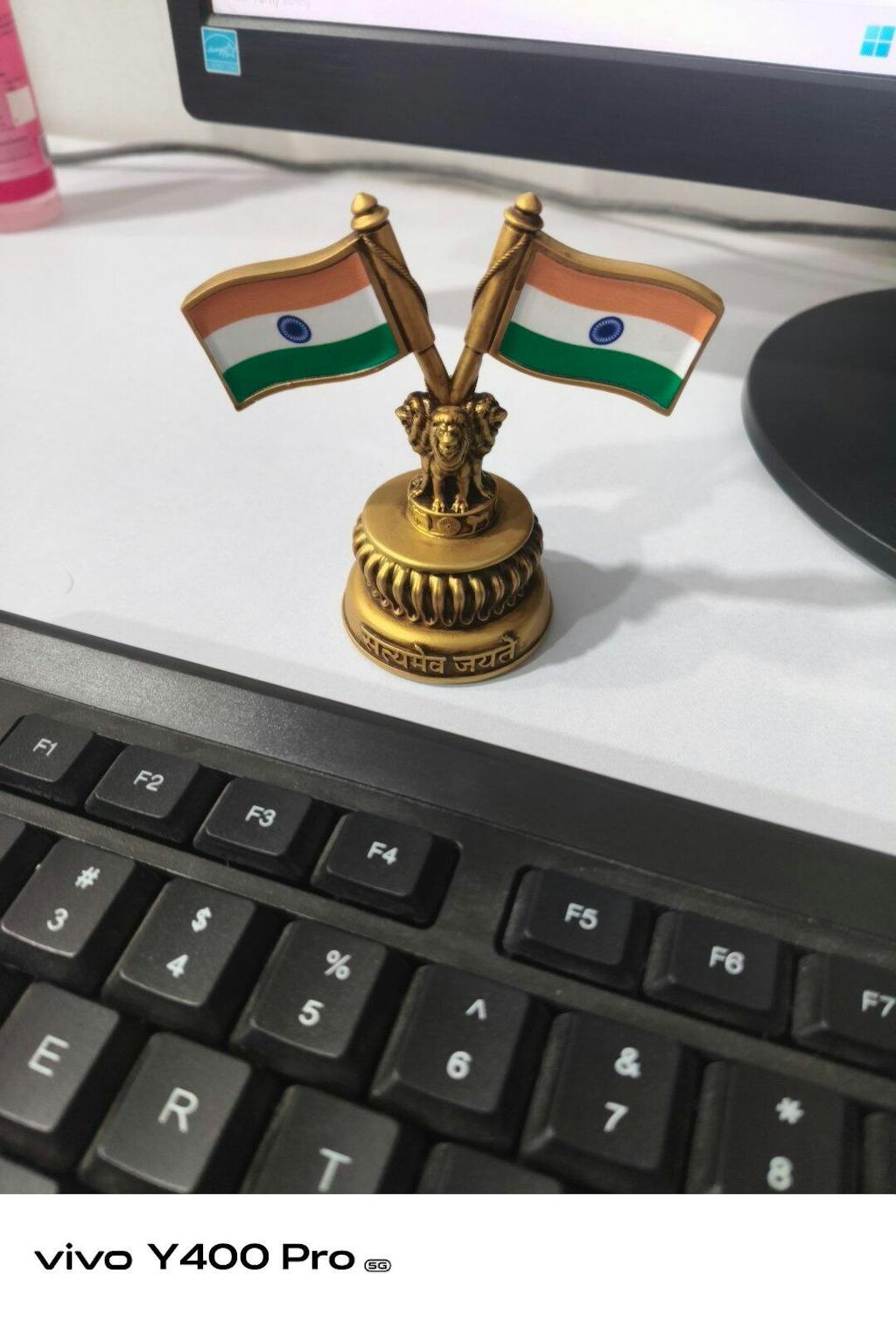 Crafted using premium-quality material with an antique gold finish, this showpiece is perfect for office desks, study tables, cabins, government offices, or home décor. Its compact yet striking presence makes it an ideal gift for civil servants, professionals, patriots, and on occasions like Independence Day, Republic Day, promotions, or achievements.